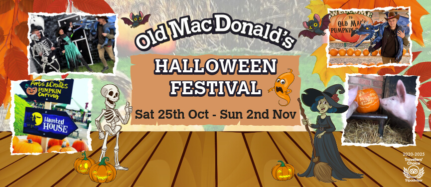 Visit between 25th October and 2nd November 2025, find your perfect pumpkin at the patch, magic shows every day, roaming dragons, the howdy Halloween show, the haunted house, old mac’s ghost trail, plus all the rides included.
