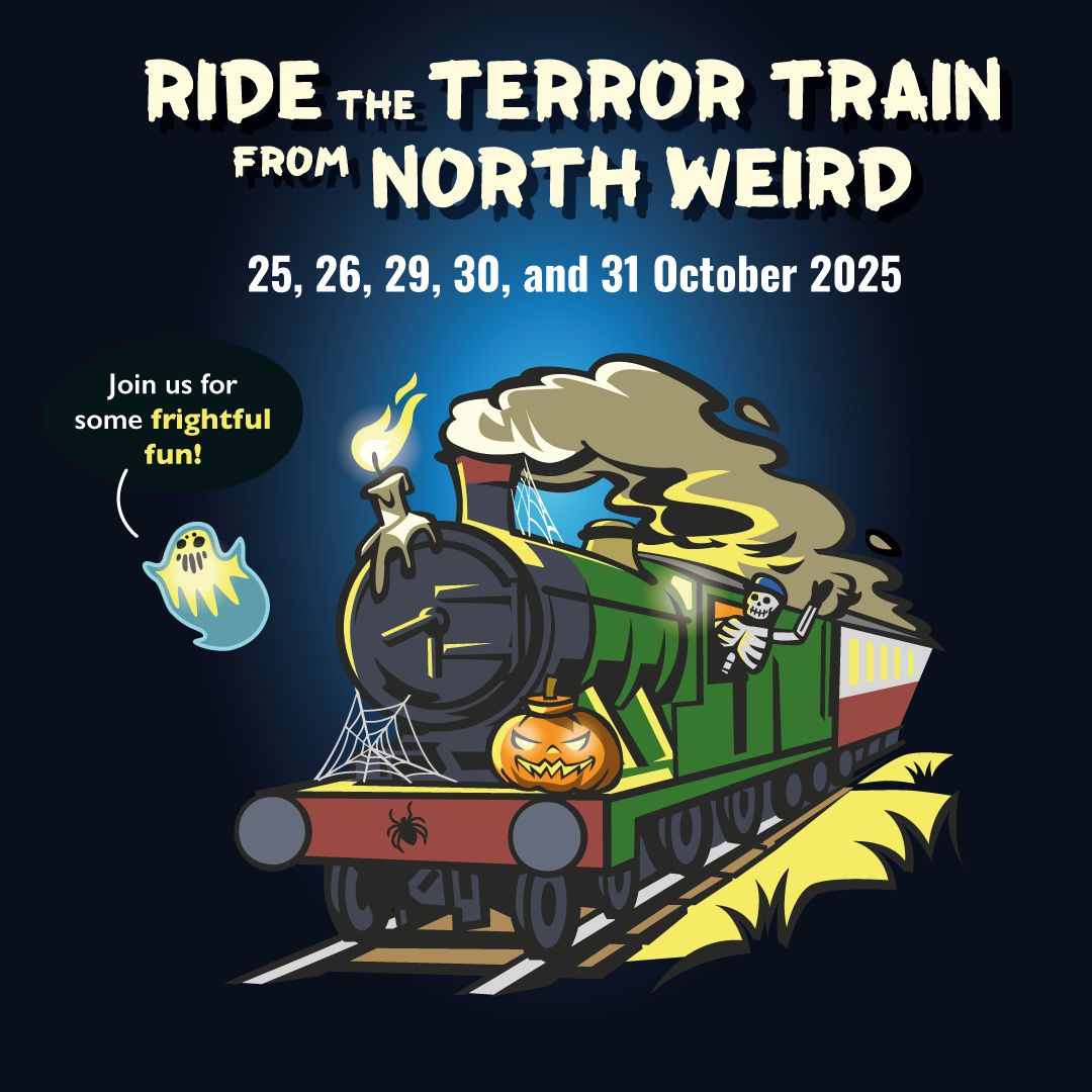 Dare you ride the Ghost Train from North Weird? Dress up in your scariest outfit and join our full size ghost train as we promise some Hallowe’en fun with the living dead!