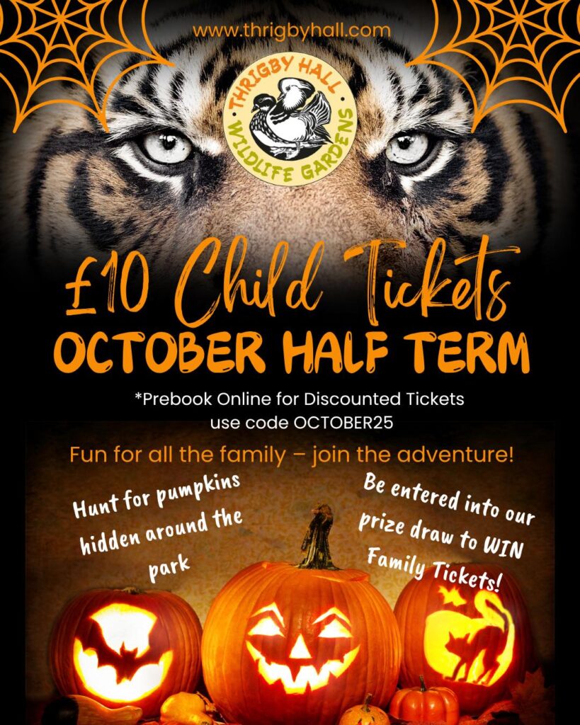 £10 Child Tickets during half term, hunt for pumpkins hidden around the park, be entered into a prize draw to win family tickets.