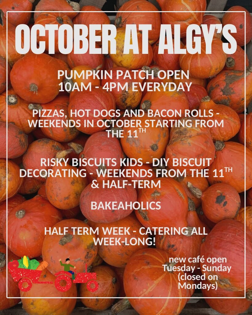 Open from 11th – 12th & 18th to 31st October 2025 with lots of different varieties of pumpkin, there will be plenty for you to choose from.