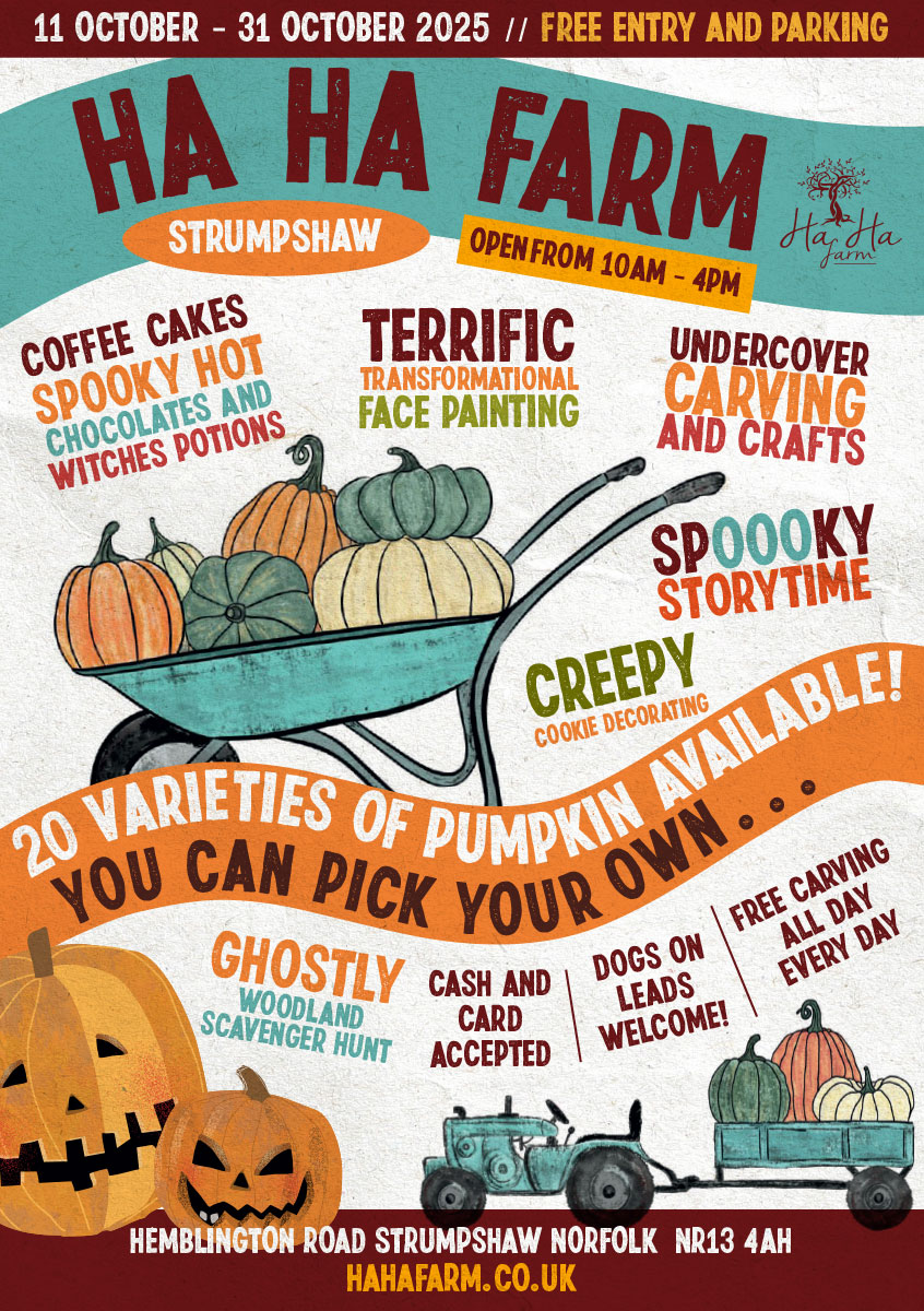 We are super excited to announce the return of our magnificent Pumpkin Patch at Ha Ha Farm… from the 11th-31st October, open everyday from 10-4pm.