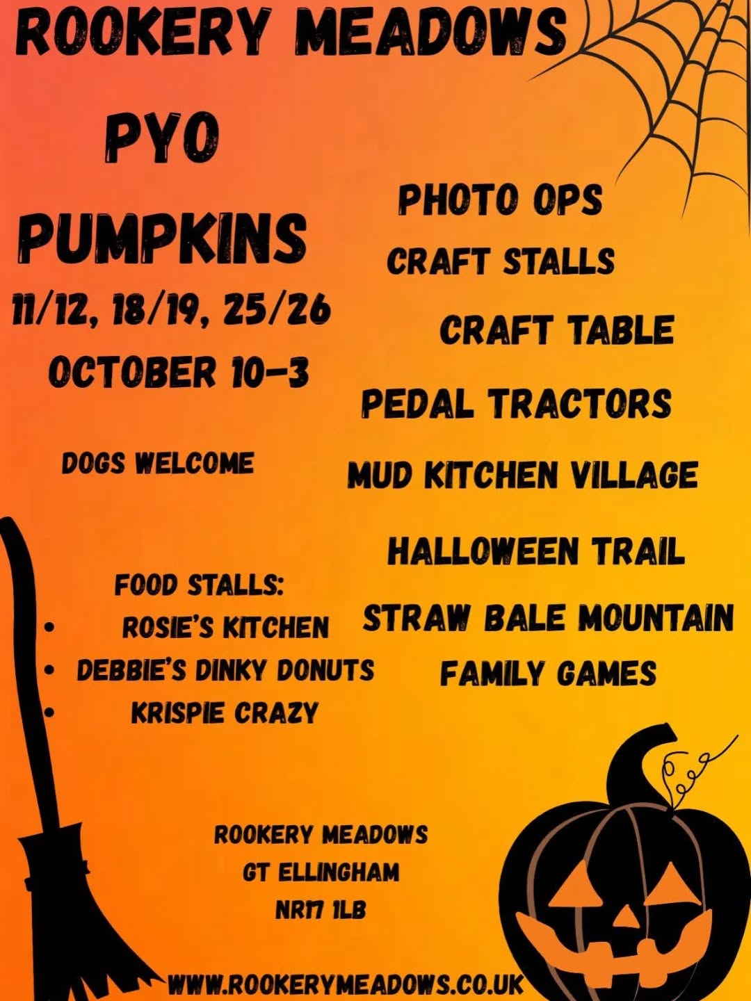 PYO Pumpkin picking fun is back. 11th/12th, 18th/19th and 25th/26th October 2025, 10am to 3pm.