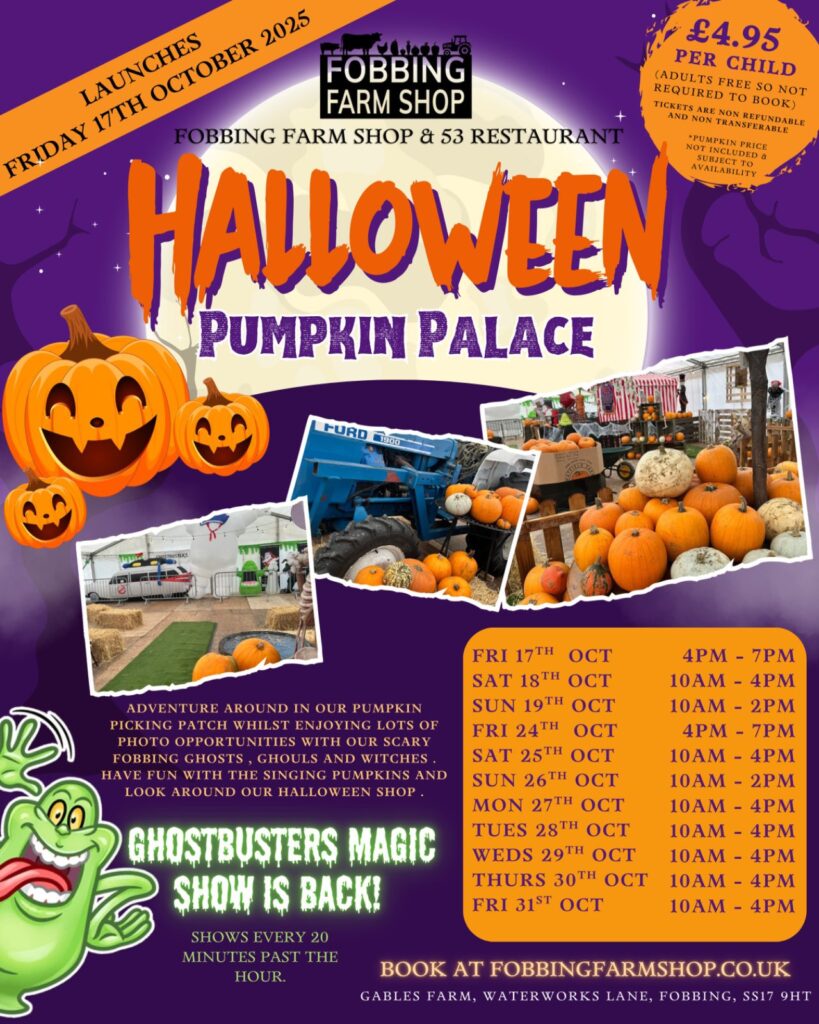 🎃 The Fobbing Farm Shop Halloween Pumpkin Palace is open from Friday 24th October until Halloween (Friday 31st October 2025)